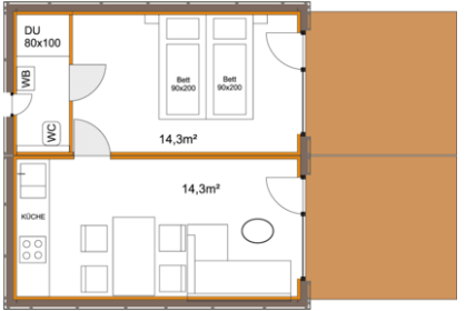• Tiny House mit 70 m² Wohnfläche, 5 Räumen ab47400 € inkl. MwSt.